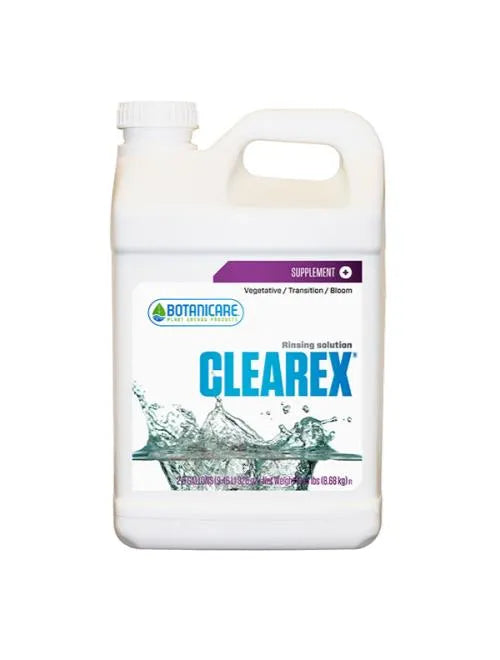 Clearex can be used to correct the most common cause of crop failure- the buildup of nutrient salt deposits in soil or soilless grow media. Over-fertilization and high concentrations of mineral based nutrients in grow media can cause shrinkage and death of plant cells due to the excess draw of water through cell walls. This can eventually lead to irreversible wilting of plant leaves and stems. It can also lead to nutrient lockout and crop failure. Clearex draws salts away from plant roots and grow media while helping to maintain equilibrium during periodic or pre-harvest flushing.