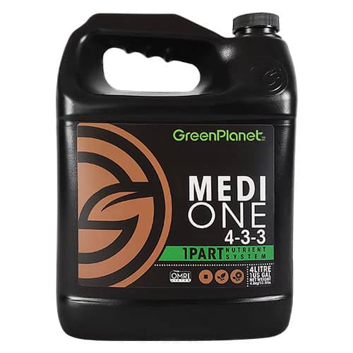 Medi One is our 1-part base nutrient system formulated with readily available macro and microelements certified for organic use. Expect vigorous vegetative growth and vibrant floral production with only one bottle. This is the base for the Medi One Feed Program.